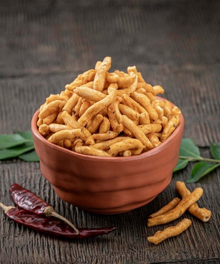 Gathiya Namkeen is a beloved traditional snack known for its light, crunchy texture and mildly spiced flavor. Made from gram flour and seasoned with subtle spices, it offers a melt-in-the-mouth experience with a hint of warmth and earthiness. Each bite delivers the perfect balance of crunch and taste, making it an ideal companion to your morning tea or evening chai. Whether plain, masala, or tikha variants, Gathiya satisfies every craving with its authentic taste of Gujarat. Loved across generations, its rich flavor and crispness make it a must-have snack for festive celebrations or daily indulgence. Taste tradition in every bite!